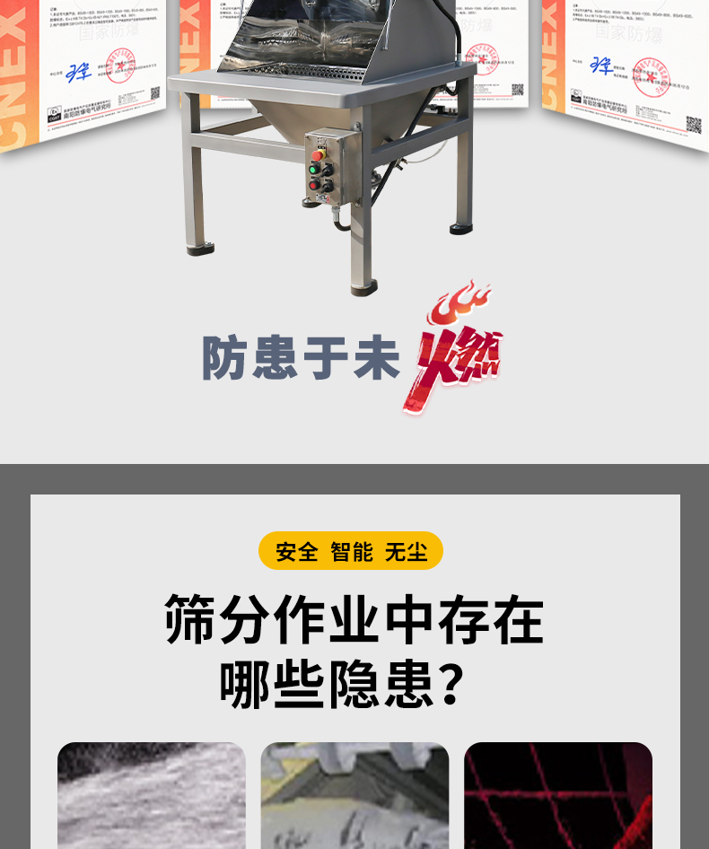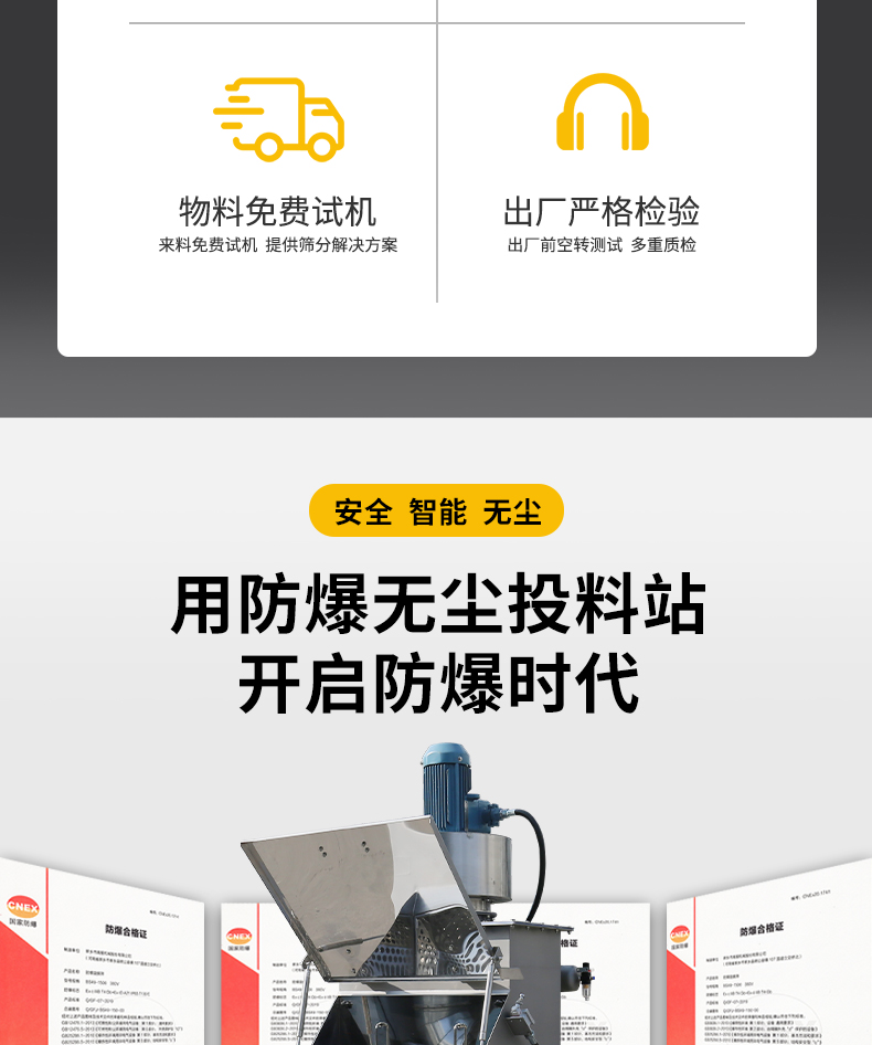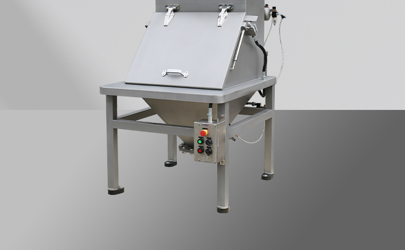 應(yīng)用范圍:適用于食品、制藥、化工、冶金行業(yè)中小袋物料的拆包、投放、篩分和卸料,特別適用于粉料人工投料和預(yù)篩分,拆包時(shí)由于集塵風(fēng)機(jī)的作用,可以避免物料粉塵到處飛揚(yáng)。